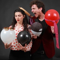 Violent and graphic language, loud noises, flashing lights, suicidal references, balloon popping. One member of the audience will be asked to join us on stage for a brief moment.