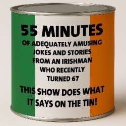 Fifty-five minutes of adequately amusing jokes and stories from an Irishman who recently turned 67. Does what it says on the tin.